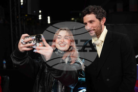 Josh O' Connor poses for a selfie with a fan upon arrival at the premiere of the film "The Mastermind" during the London film festival in London, Monday, Oct. 13, 2025. (Photo by Scott A Garfitt/Invision/AP)