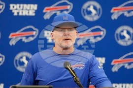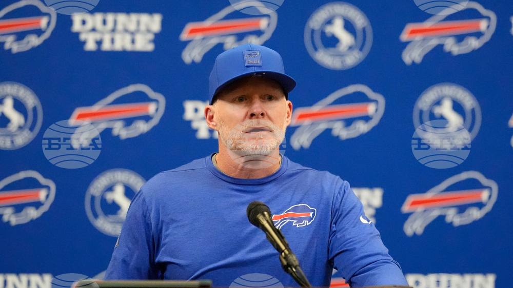 Buffalo Bills head coach Sean McDermott speaks after an NFL football game between the Atlanta Falcons and the Buffalo Bills, Monday, Oct. 13, 2025, in Atlanta. (AP Photo/Mike Stewart)