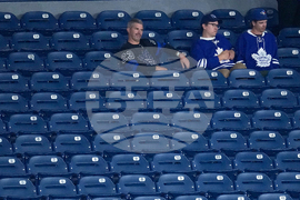 Toronto Blue Jays fans sit in the stadium after Game 2 of baseball's American League Championship Series against the Seattle Mariners, Monday, Oct. 13, 2025, in Toronto. (AP Photo/David J. Phillip)