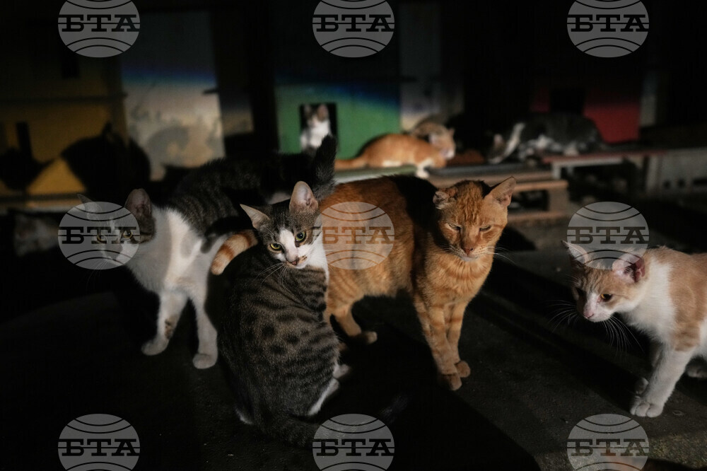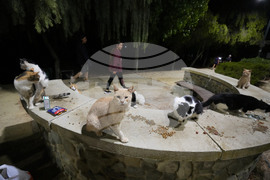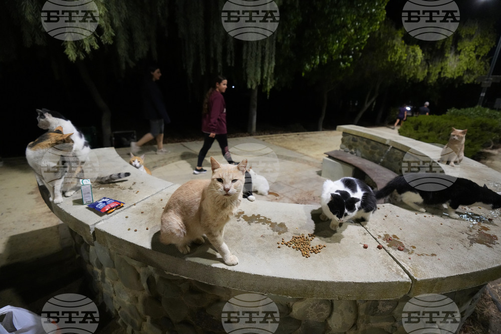 Cats are seen at a park in Lakatamia area, of capital Nicosia, Cyprus, Oct. 4, 2025. (AP Photo/Petros Karadjias)