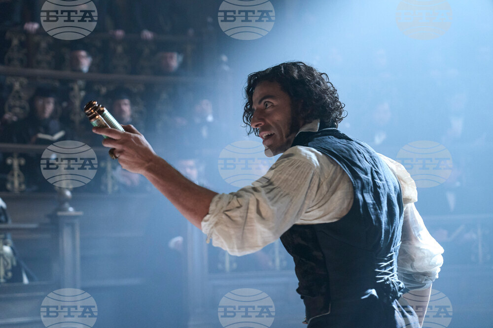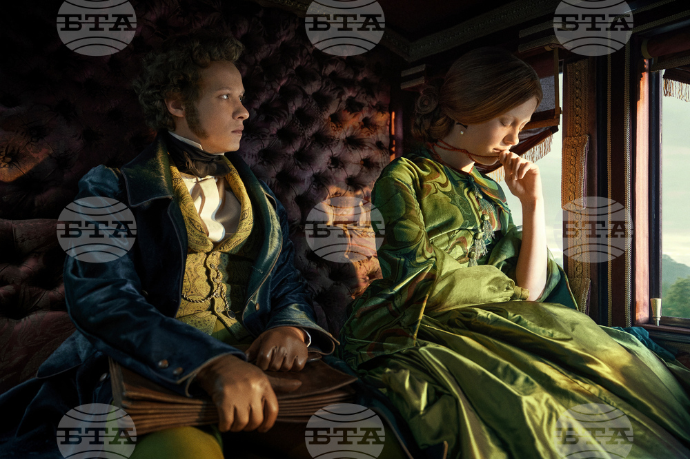 This image released by Netflix shows Felix Kammerer and Mia Goth in a scene from "Frankenstein." (Netflix via AP)