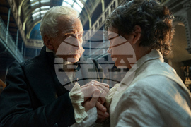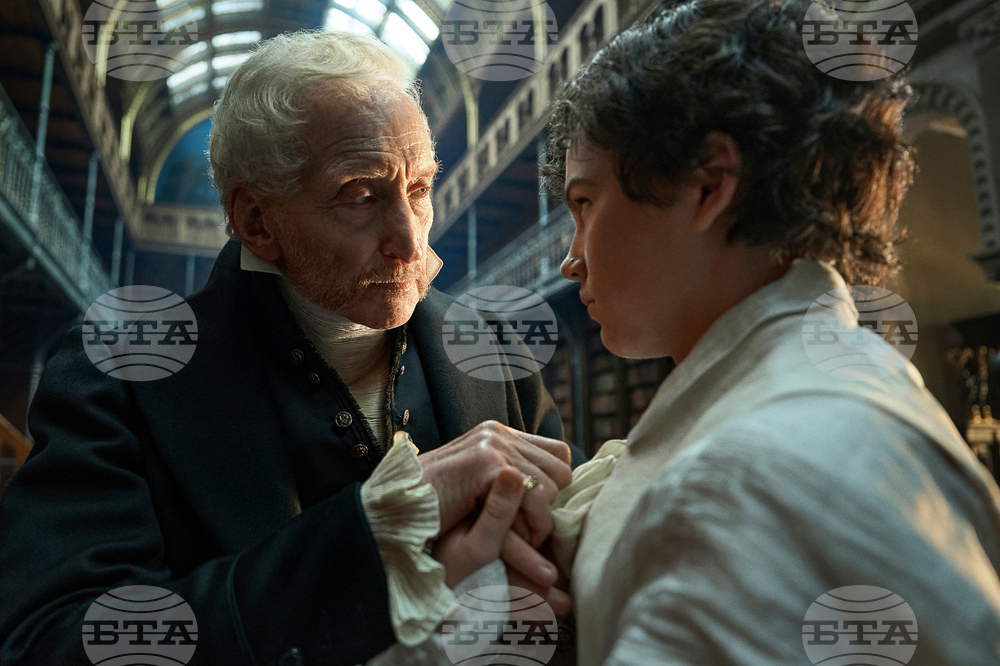 This image released by Netflix shows Sofia Galasso, left, and David Bradley in a scene from "Frankenstein." (Netflix via AP)