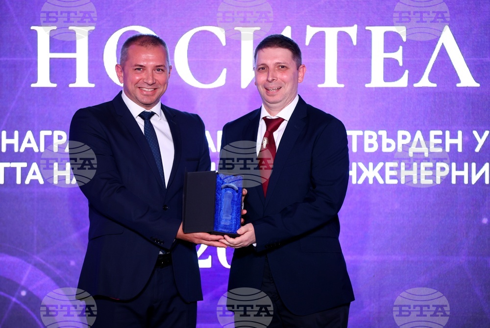 София (14 октомври 2025) Министерството на образованието и науката (МОН) връчва годишните Национални награди за принос в науката „Питагор”. На снимката: доц. д-р Мартин Ралчев (вдясно) от Института по роботика към БАН получава награда в областта на науката.