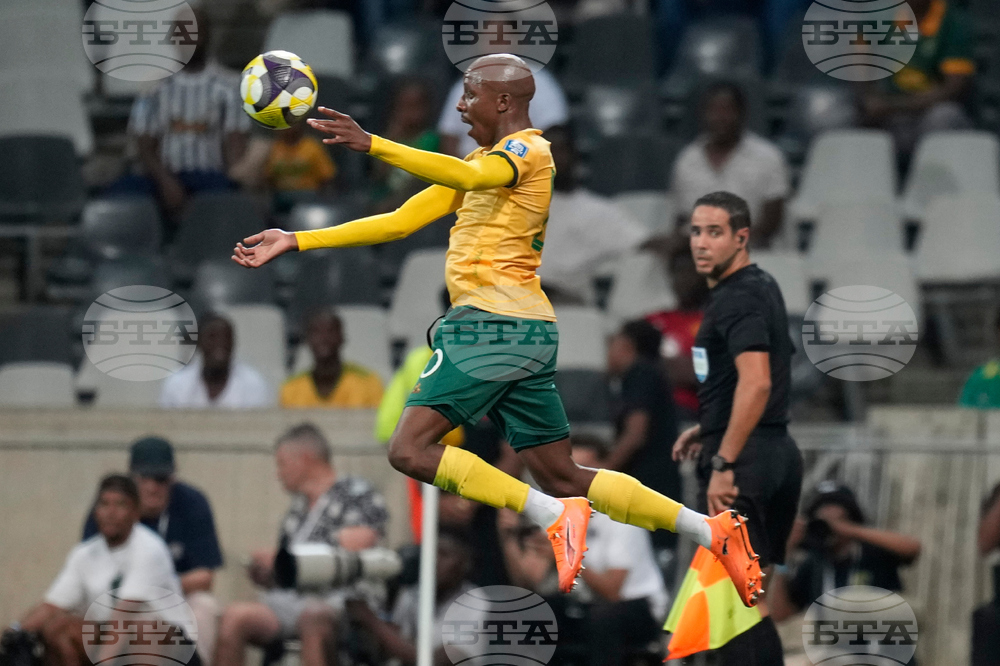 South Africa's Khuliso Mudau controls the ball during a World Cup 2026 group C qualifying soccer match between South Africa and Rwanda at Mbombela Stadium, in Nelspruit, South Africa, Tuesday, Oct. 14, 2025. (AP Photo/Themba Hadebe)