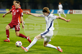 England's Myles Lewis-Skelly, controls the ball during the 2026 World Cup group K qualifying soccer match between Latvia and England in Riga, Latvia, Tuesday, Oct. 14, 2025. (AP Photo/Mindaugas Kulbis)