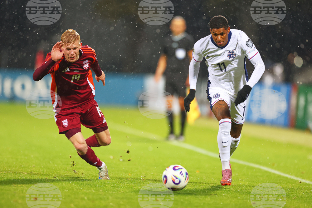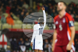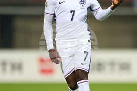 England's Marcus Rashford in action during the 2026 World Cup group K qualifying soccer match between Latvia and England in Riga, Latvia, Tuesday, Oct. 14, 2025. (AP Photo/Roman Koksarov)
