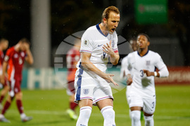 England's Harry Kane celebrates after scoring his side's third goal during the 2026 World Cup group K qualifying soccer match between Latvia and England in Riga, Latvia, Tuesday, Oct. 14, 2025. (AP Photo/Mindaugas Kulbis)