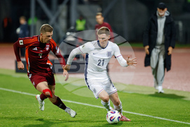 England's Anthony Gordon in action during the 2026 World Cup group K qualifying soccer match between Latvia and England in Riga, Latvia, Tuesday, Oct. 14, 2025. (AP Photo/Roman Koksarov)