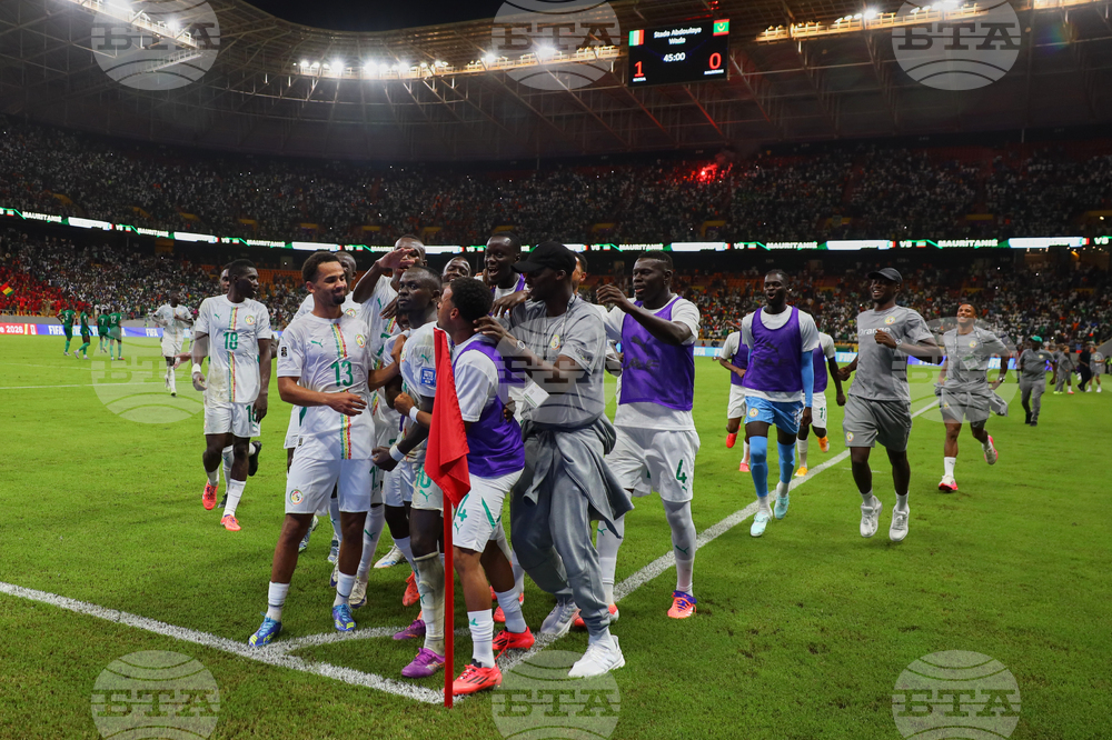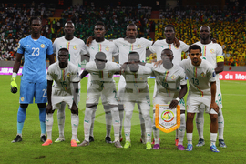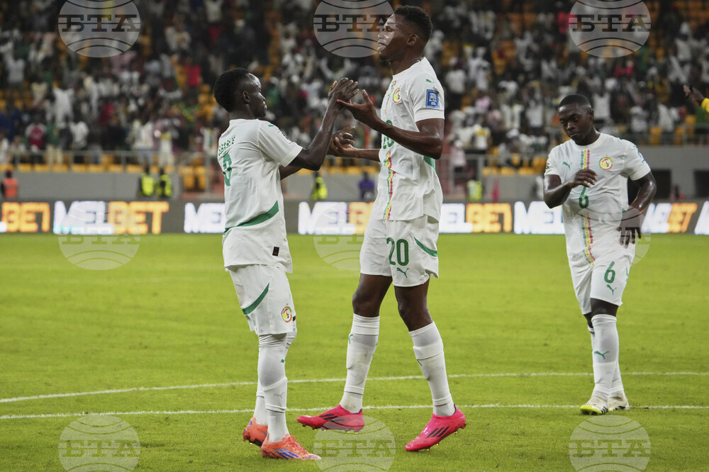 Senegal's players pose before the start of a World Cup Group B qualifying soccer match between Senegal and Mauritania at the Stade Abdoulaye Wade in Dakar, Senegal, Tuesday, Oct. 14, 2025. (AP Photo/Misper Apawu)