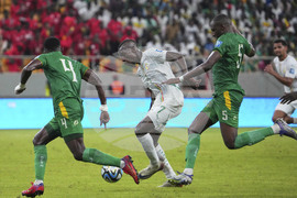 Senegal's Sadio Mané stands during the playing of his country's national anthem during a World Cup qualifying soccer match against Mauritania at Stade Abdoulaye Wade in Dakar, Senegal, Tuesday, Oct. 14, 2025. (AP Photo/Misper Apawu)