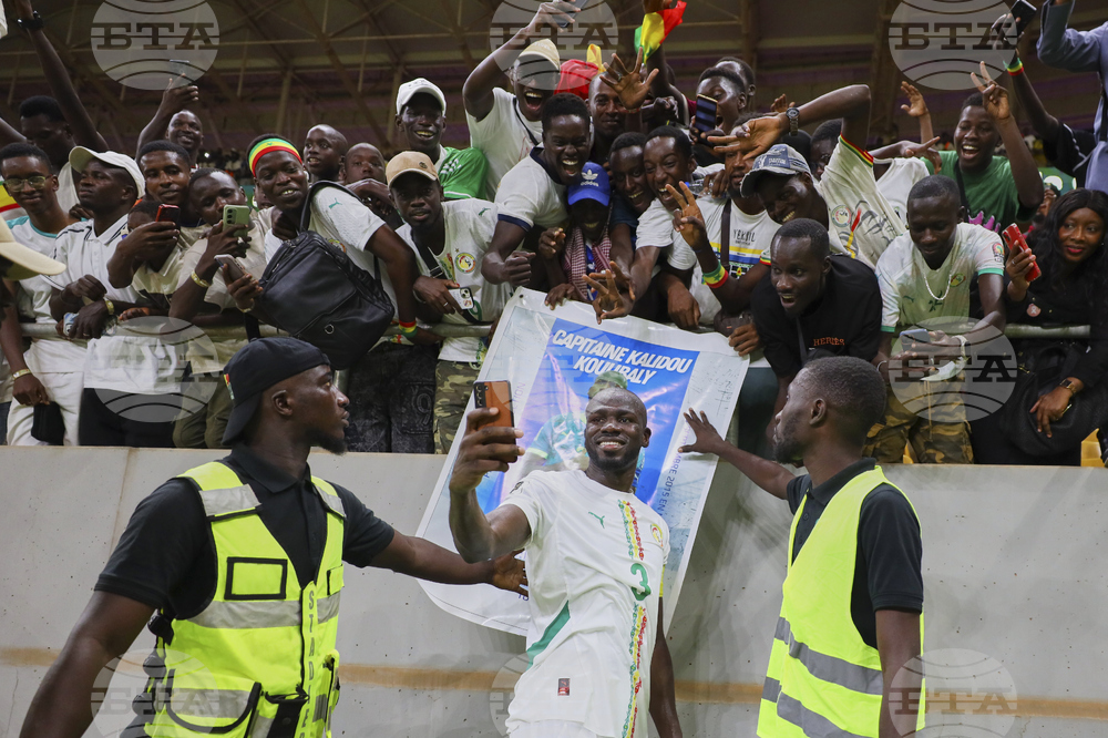 Senegal's supporters cheer ahead of a World Cup Group B qualifying soccer match between Senegal and Mauritania at the Stade Abdoulaye Wade in Dakar, Senegal, Tuesday, Oct. 14, 2025. (AP Photo/Misper Apawu)