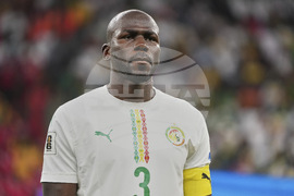 Senegal's captain Kalidou Koulibaly stands during the playing of his country's national anthem during a World Cup qualifying soccer match against Mauritania at Stade Abdoulaye Wade in Dakar, Senegal, Tuesday, Oct. 14, 2025. (AP Photo/Misper Apawu)