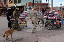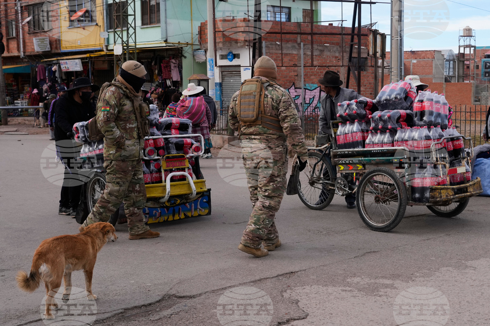 Bolivian soldiers patrol the border with Peru, in Desaguadero, Bolivia, Tuesday, Oct. 14, 2025. (AP Photo/Juan Karita)