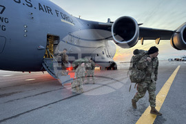 In this photo provided by Alaska National Guard, members of the Alaska National Guard prepare for departure from Joint Base Elmendorf-Richardson in Anchorage, Alaska, Monday, Oct. 13, 2025, during storm response operations after Typhoon Halong's landfall. (Capt. Balinda O'Neal/Alaska National Guard via AP)