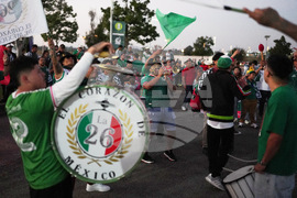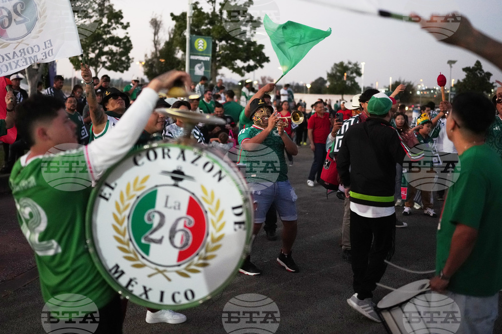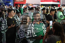 Mexico fans wait for a friendly soccer match between Mexico and Ecuador at Akron stadium in Guadalajara, Mexico, Tuesday, Oct. 14, 2025. (AP Photo/Eduardo Verdugo)