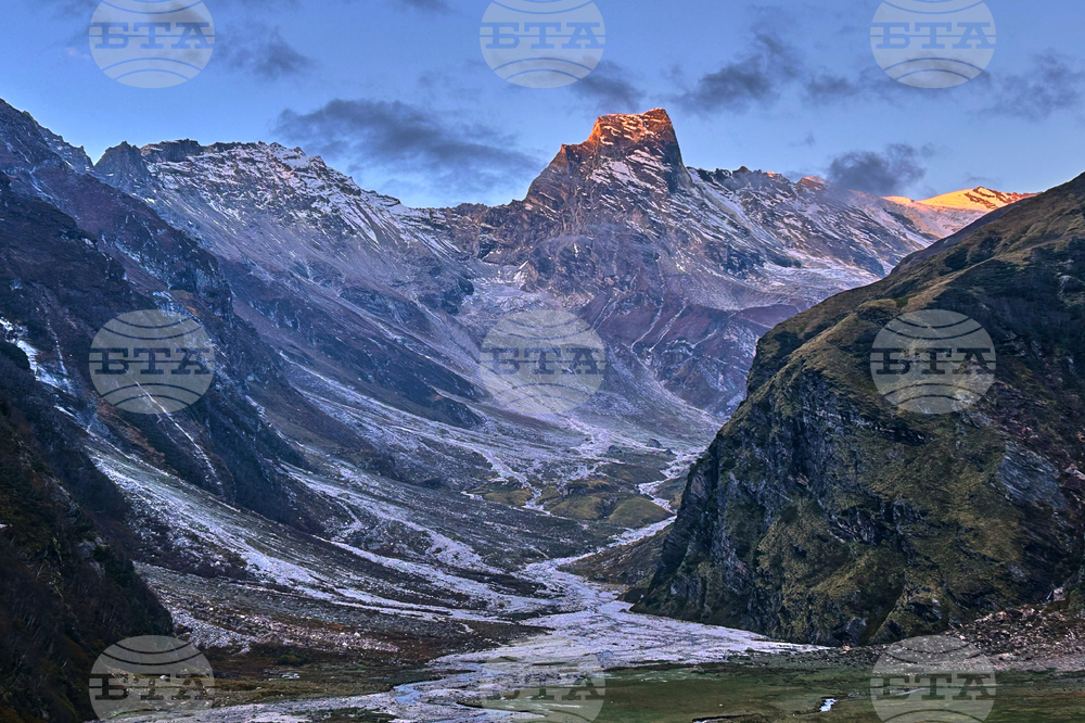 The morning sun illuminates Bankatiya Peak near Laspa village, in the northern Indian Himalayan state of Uttarakhand, on Sept. 28, 2025. (AP Photo/Satish Sharma)