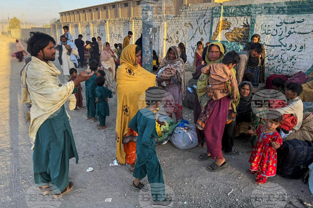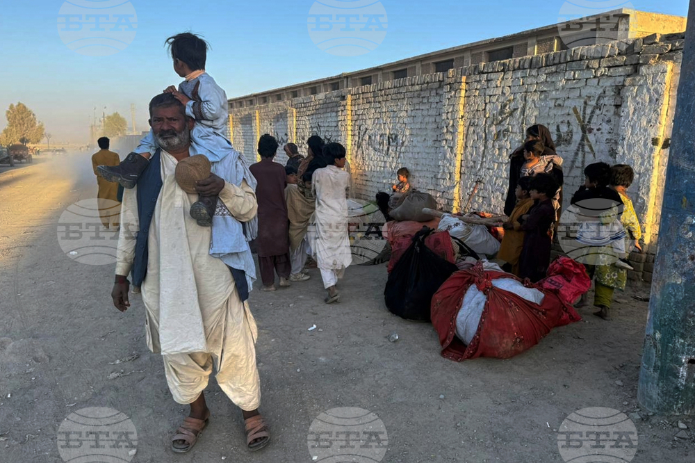 Local residents, who fled their homes following border clashes between Pakistan and Afghan forces, wait for transportation in Chaman, a town on the Pakistan Afghanistan border, Wednesday, Oct. 15, 2025. (AP Photo/H. Achakzai)