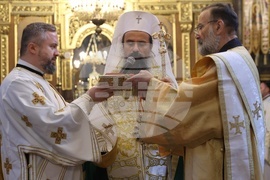 София (15 октомври 2025) В митрополитския катедрален храм "Св. великомъченица Неделя" се отслужва заупокойна света литургия в памет на починалия през 2024 г. български патриарх и Софийски митрополит Неофит, а след нея - панихида и трисагий на гроба на патриарх Неофит. На снимката: патриарх Даниил (вляво).