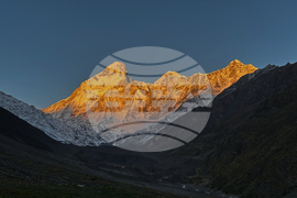 The morning sun illuminates Nanda Devi peak as seen from Nanda Devi base camp, in the northern Indian Himalayan state of Uttarakhand, on Oct. 1, 2025. (AP Photo/Satish Sharma)