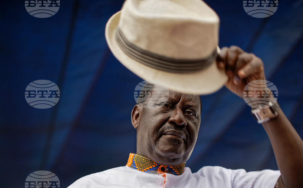 FILE - Presidential candidate Raila Odinga arrives to attend Sunday mass in St. Francis church in Nairobi, Kenya, Aug. 14, 2022. (AP Photo/Mosa'ab Elshamy, File)