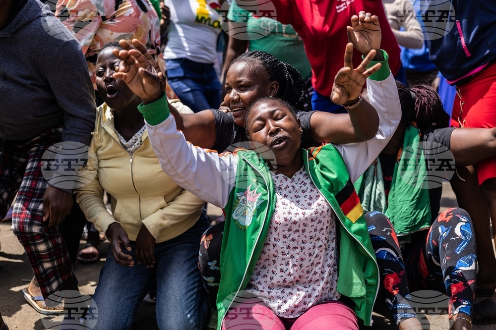 People react in the Kibera neighborhood of Nairobi, Kenya, to the death of Kenya former prime minister Raila Odinga Wednesday, Oct. 15, 2025. Odinga died of a heart attack in Indiaat the age of 80. (AP Photo/Samson Otieno)