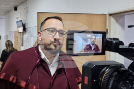 Пловдив (15 октомври 2025) В Районния съд в Пловдив започна отначало делото срещу Петър Чернев и Стела Димитрова - пастрок и майка на шестгодишния Адриан. Те са обвинени в това, че са малтретирали физически и вербално момчето. Окръженият съд върна делото обратно заради допуснати съществени процесуални нарушения в анализа на доказателствата, събрани в хода на съдебното следствие. На снимката: прокурор Димитър Костов.