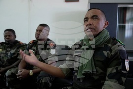 CAPSAT military unit commander Col. Michael Randrianirina, right, speaks during an interview with the Associated Press at the CAPSAT military barracks in Antananarivo, Madagascar, Wednesday, Oct. 15, 2025. (AP Photo/Brian Inganga)
