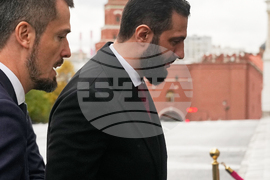 Syrian interim President Ahmad al-Sharaa, right, arrives at the Grand Kremlin Palace for his meeting with Russian President Vladimir Putin in Moscow, Russia, Wednesday, Oct. 15, 2025. (AP Photo/Pavel Bednyakov, Pool)