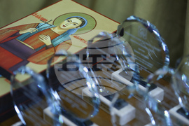 София (15 октомври 2025) Церемонията по връчване на наградата „Българка на година - Света Злата Мъгленска 2024” се провежда в Университета за национално и световно стопанство (УНСС). Събитието е организирано от Изпълнителната агенция за българите в чужбина. На събитието присъстват генералният директор на Българската телеграфна агенция (БТА) Кирил Вълчев и журналистката Милена Милотинова (вдясно).