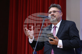 София (15 октомври 2025) Церемонията по връчване на наградата „Българка на година - Света Злата Мъгленска 2024” се провежда в Университета за национално и световно стопанство (УНСС). Събитието е организирано от Изпълнителната агенция за българите в чужбина. На снимката: генералният директор на Българската телеграфна агенция (БТА) Кирил Вълчев.