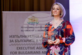 София (15 октомври 2025) Церемонията по връчване на наградата „Българка на година - Света Злата Мъгленска 2024” се провежда в Университета за национално и световно стопанство (УНСС). Събитието е организирано от Изпълнителната агенция за българите в чужбина. На снимката: изпълнителният директор на Изпълнителната агенция за българите в чужбина (ИАБЧ) Райна Манджукова.