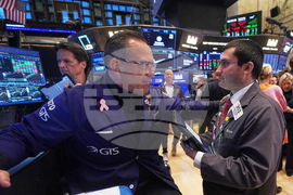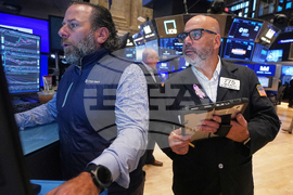Trader Patrick Casey, left, and specialist James Denaro work on the floor of the New York Stock Exchange, Wednesday, Oct. 15, 2025. (AP Photo/Richard Drew)