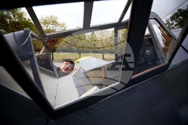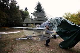 София (16 октомври 2025) В парковото пространство на Националния исторически музей (НИМ) се конструира копие на самолета на капитан Димитър Списаревски по инициатива на Асоциацията за история и бъдеще на българската авиация (АИББА). На снимката: Румен Чакъров.