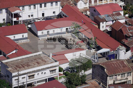 Soldiers parade inside a barracks in Antananarivo, Madagascar, Wednesday, Oct. 15, 2025. (AP Photo/Brian Inganga)