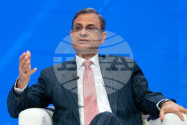 Governor of the Reserve Bank of India Sanjay Malhotra speaks at Governor Talks conference during the World Bank/IMF Annual Meetings at the International Monetary Fund (IMF) headquarters in Washington, Wednesday, Oct. 15, 2025. (AP Photo/Jose Luis Magana)