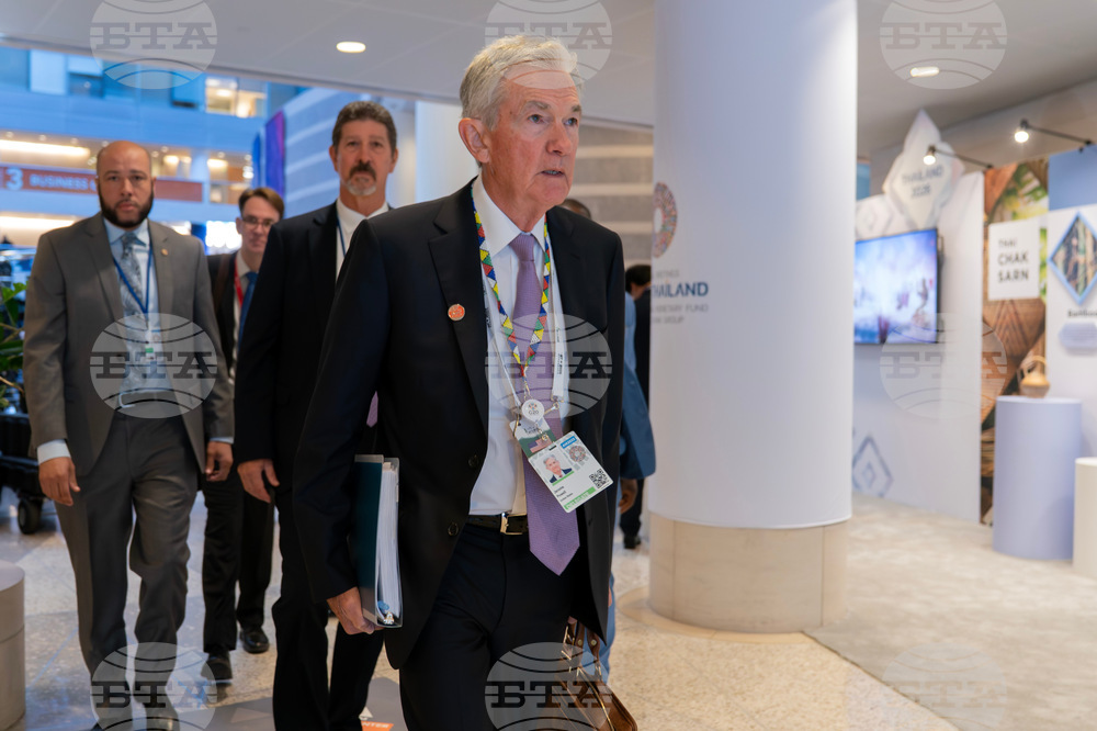 Federal Reserve Board Chairman Jerome Powell walks to a meeting during the World Bank/IMF Annual Meetings at the International Monetary Fund (IMF) headquarters in Washington, Thursday, Oct. 16, 2025. (AP Photo/Jose Luis Magana)