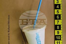 This image, provided by the Nassau County District Attorney, in Mineola, N.Y., Wednesday, Oct 15, 2025, shows a cup with straw used by Richard Bilodeau. (Nassau County District Attorney via AP)