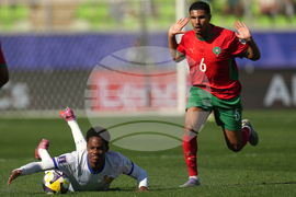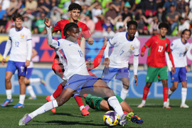 France's Fode Sylla attacks during a FIFA U-20 World Cup semifinal soccer match against Morocco at Elias Figueroa Brander Stadium in Valparaiso, Chile, Wednesday, Oct. 15, 2025. (AP Photo/Andre Penner)