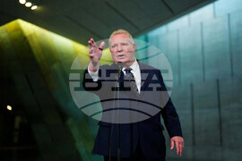 FILE - Ontario Premier Doug Ford speaks to reporters following the First Ministers Meeting at the National War Museum March 21, 2025, in Ottawa, Canada. (Sean Kilpatrick/The Canadian Press via AP, File)