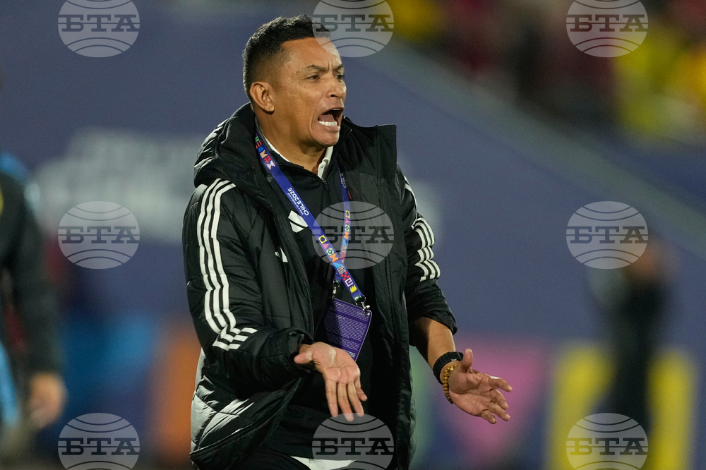 Colombia's coach Cesar Torres instructs his players during a FIFA U-20 World Cup semifinal soccer match against Argentina at National Stadium in Santiago, Chile, Wednesday, Oct. 15, 2025. (AP Photo/Esteban Felix)