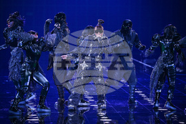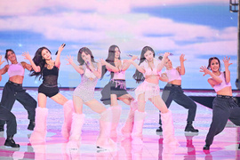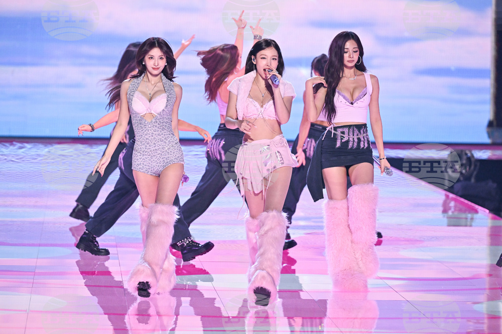 Jihyo, from left, Momo, Tzuyu, and Nayeon of TWICE perform during the Victoria's Secret Fashion Show on Wednesday, Oct. 15, 2025, in the Brooklyn borough of New York. (Photo by Evan Agostini/Invision/AP)