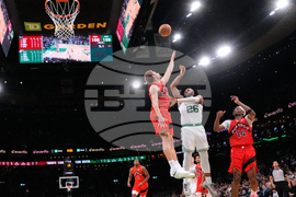 Boston Celtics forward Xavier Tillman (26) takes the game-winning shot against the Toronto Raptors during the second half of a preseason NBA basketball game, Wednesday, Oct. 15, 2025, in Boston. (AP Photo/Charles Krupa)