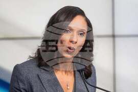 Detroit City Council President Mary Sheffield faces off against Solomon Kinloch Jr. in a televised debate between the two remaining candidates in Detroit's mayoral race on Wednesday, Oct. 15, 2025, at the WXYZ-TV studio in Southfield, Mich. (Katy Kildee/Detroit News via AP)