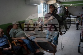 FILE - Humanitarian worker Roger Duvan Lagunes carries a fan into the Cogra, an elderly shelter, in Veracruz, Mexico, on June 16, 2024. (AP Photo/Felix Marquez)