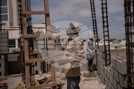 FILE - Jorge Moreno, a worker, drinks flavored water to cope with the heat wave during his workday at a construction site in Veracruz, Mexico, June 17, 2024. (AP Photo/Felix Marquez, File)