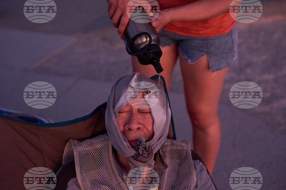 FILE - Grace Chyuwei pours water on Joe Chyuwei to help with the heat Aug. 3, 2025, in Death Valley National Park, Calif. (AP Photo/John Locher, File)
