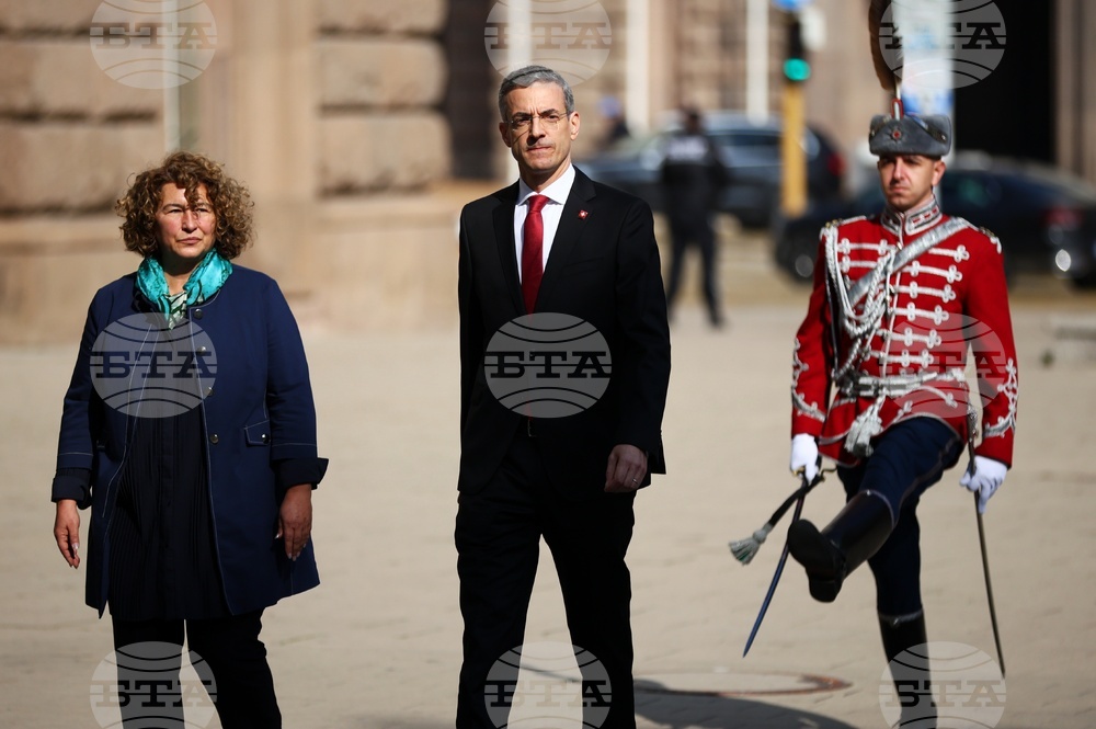 София (16 октомври 2025) Новоназначеният извънреден и пълномощен посланик на Конфедерация Швейцария Пиер Хагман (в средата) връчва акредитивните си писма на президента на Република България.