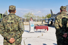 Крумово (16 октомври 2025) Деня на авиацията и Военновъздушните сили се отбелязва в Музея на авиацията край Пловдив, филиал на Националния военноисторически музей. Празничната програма започна с тържествен строй с участието на военнослужещи от 24 авиобаза - Крумово. По повод празника бяха отличени военнослужещи от авиобазата. Посетителите на музея ще имат възможност днес да разгледат отвътре пилотската кабина и салона на един от атрактивните експонати във външната експозиция на Музея - самолет Ан-2. На снимката: подполковник Пламен Дончев.