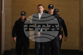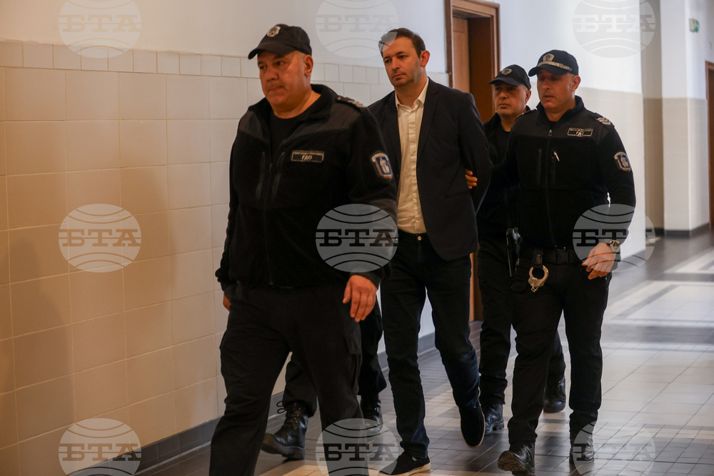 София (16 октомври 2025) В Съдебната палата гледат мярка за неотклонение на бившия заместник-кмет на София Никола Барбутов (в средата).
