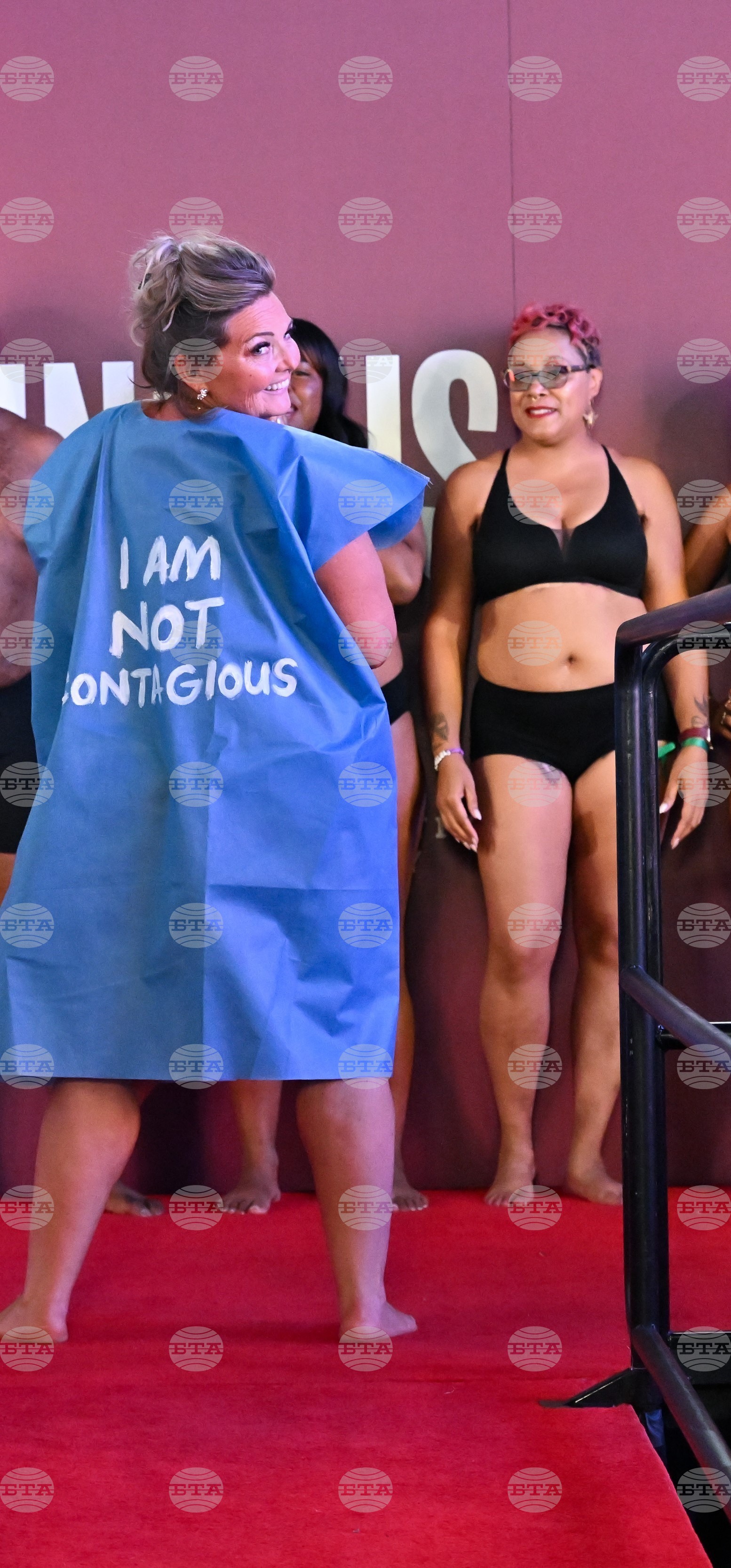 IMAGE DISTRIBUTED FOR UCB, INC. - Empowered and Unstoppable: HS advocates Cydney, Liz, Leia, and Mario prepare to take the Times Square runway, to confront the stigma and misconceptions around hidradenitis suppurativa. Image taken on Saturday, Oct. 4, 2025 in New York. (Diane Bondareff/AP Content Services for UCB, Inc.)